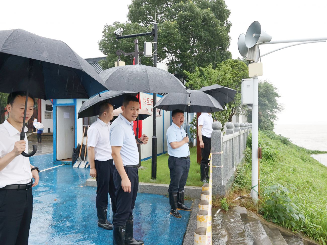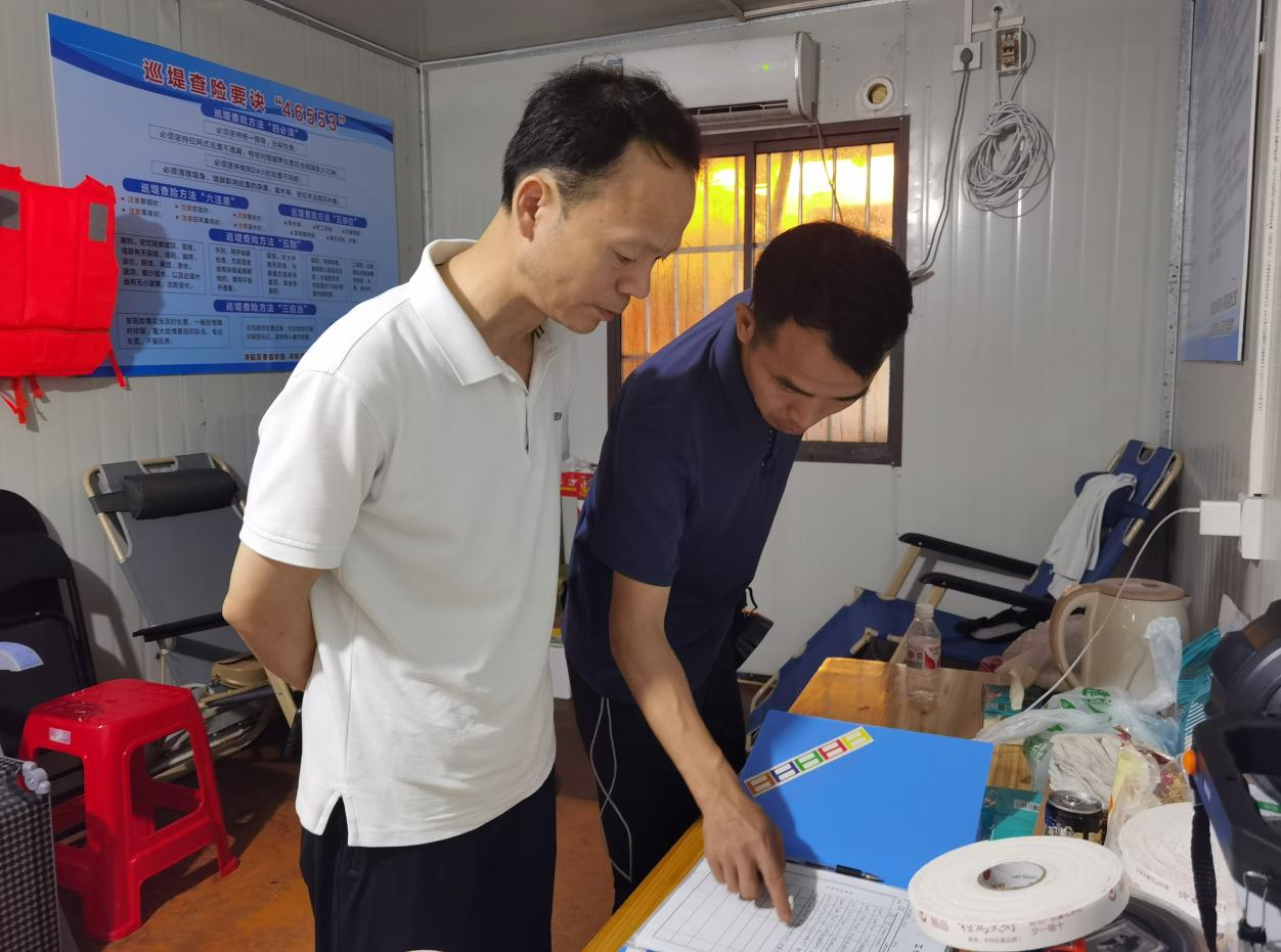 檢查組沿著堤壩察看水情水勢,詳細檢查了四個防汛點位值班值守、物資儲備、巡堤查險情況,并提出防汛工作要求:一要提高思想認識,壓緊工作責任。在多輪降水、上游分洪等不利因素下,集團上下要清醒認識到防汛形勢的復(fù)雜性、嚴峻性,堅決克服麻痹思想和僥幸心理,發(fā)揮模范帶頭作用,危難面前勇于擔當,嚴格落實防汛工作責任,做好防汛應(yīng)急值守。二要強化巡堤查險,落實防汛措施。嚴格落實巡堤查險“四個六”要求,密切關(guān)注水位,加密巡查頻率,做到“不在堤上看風景、要到道閘查險情”,發(fā)現(xiàn)大量冒水冒沙情況要第一時間報告處置;做好袋裝砂石、封堵石板等防汛物資儲備工作,確保發(fā)生險情時派得出、用得上;加強天花井等景區(qū)邊坡的監(jiān)測和巡查,合理設(shè)置安全警示標志,做好滑坡、塌方等防護措施,全力以赴保障安全。三要加大監(jiān)督檢查,嚴明工作紀律。各責任領(lǐng)導(dǎo)要加大統(tǒng)籌力度、加強檢查調(diào)度、靠前指揮部署,全力以赴抓好各項工作落實,確保集團安全度汛;各值守人員要熟悉排險要求、掌握工作要領(lǐng),科學(xué)規(guī)范操作,嚴格交接班制度,做好巡查記錄,確保防汛工作做到實處。